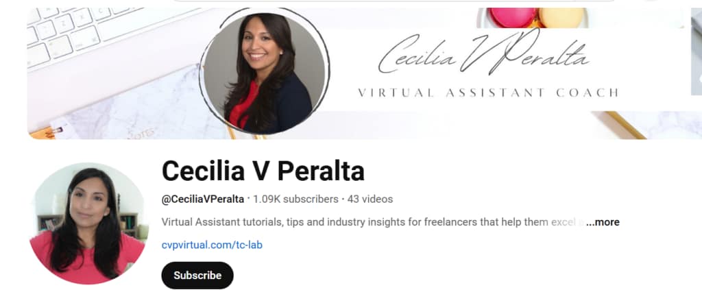 I found this awesome YouTube channel by Cecilia V. Peralta, a passionate virtual assistant who shares tutorials, tips, and insights to help freelancers excel as VAs and boost productivity.